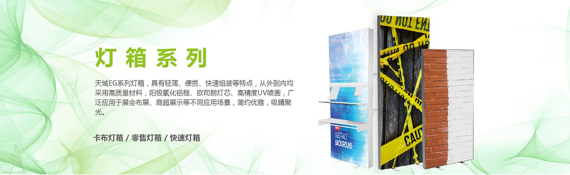 江门市天域展示器材有限公司是一家专门从事器材开发、生产、销售以及展览工程设计施工为一体的综合型企业。作为专业展览展示公司,近年来随着展览展示行业的飞速发展,天域展示不断推陈出新,生产出多种展示器材,新颖独特,展示效果非凡。天域展示器材有限公司总部设在广东江门,在美国、法国、荷兰、澳大利亚、台湾、香港等多个国家或地区设有销售代理。我们生产的展示器材具有绿色环保、运输方便、便捷安装等特点,是品牌宣传、展览、产品陈列的理想选择。我们十分注重公司的声誉和客户的售后服务,严格把守生产质量,部分产品通过UL、CE、ROHS等认证,并对售后产品提供及时的售后和维护。